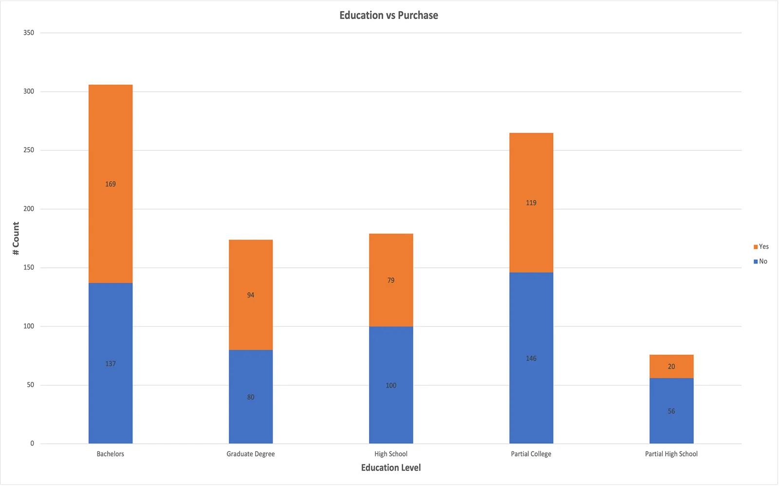 - Average income of males purchasing bikes is ~8% higher than females. A clear income gap exists between buyers and non-buyers in both genders.